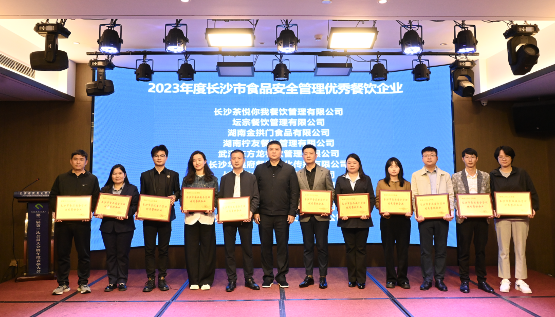 4月11日召開的長沙市飲食安全協會第二屆第三次會員大會暨年度表彰大會上,蒸瀏記獲評長沙市食品安全管理優秀餐飲企業和餐飲服務單位“誠信之星”企業兩項榮譽,并上臺接受頒獎。