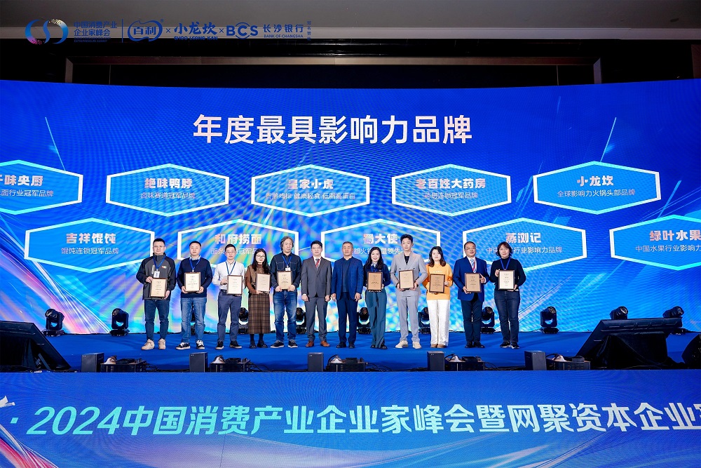12月9日-10日,2024中國消費產業企業家峰會暨網聚資本企業家年會在長沙舉行。網聚資本、弗若斯特沙利文、中金公司、中國銀河國際現場聯合發布了“奮輯者先——2024中國消費產業年度評選榜單”,蒸瀏記登上“年度最具影響力品牌”榜單。